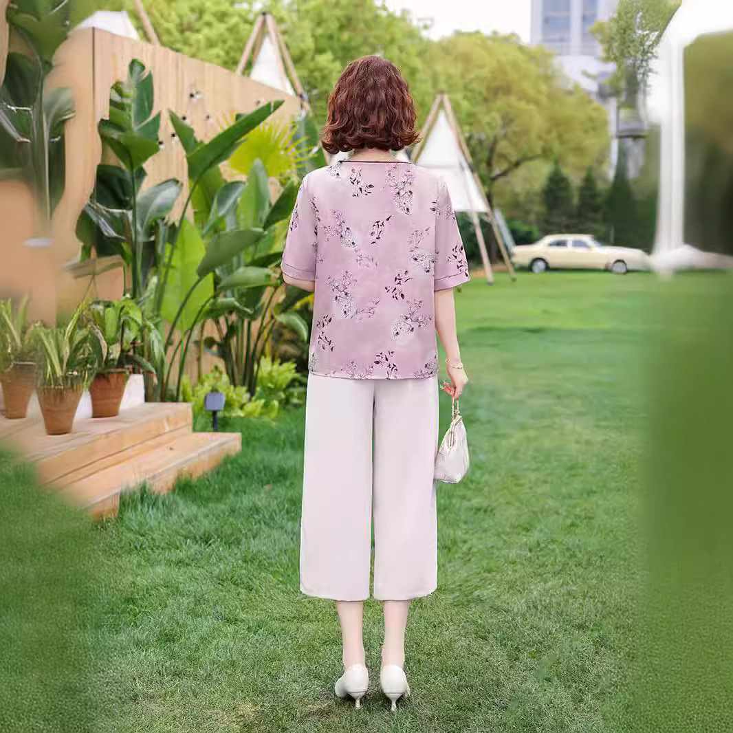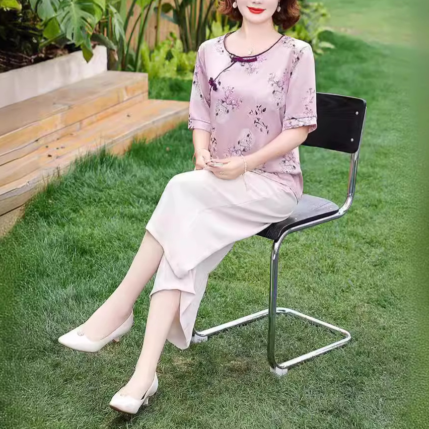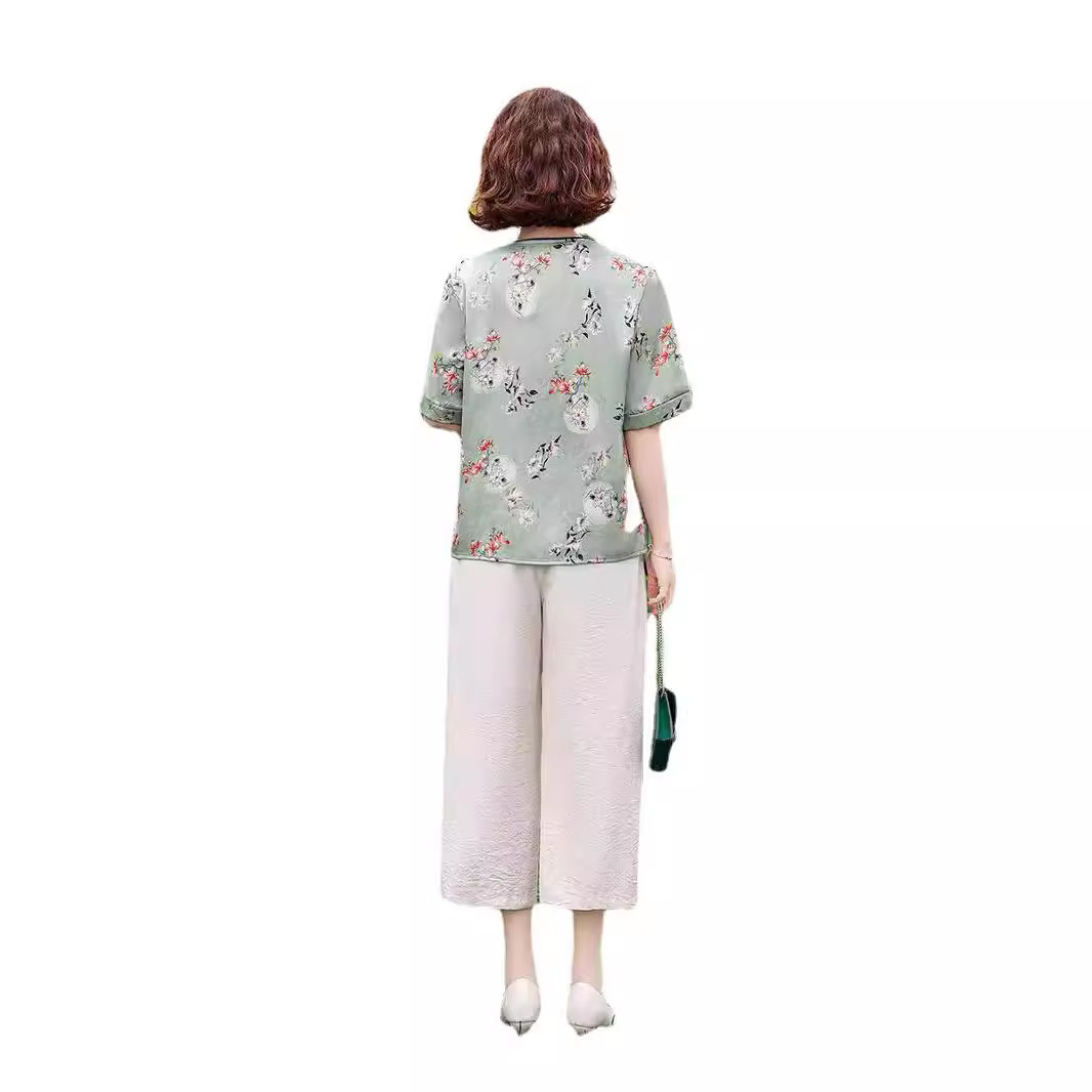 | nameOriginal | Summer New National Style Printed Loose plus size Middle-aged and Elderly Mother's Short-sleeved Silk suit Wide-leg Pants Two-piece Set |
