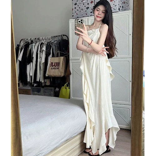 | nameOriginal | Summer new ruffled backless suspender A-line skirt |
