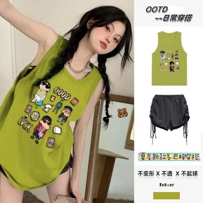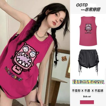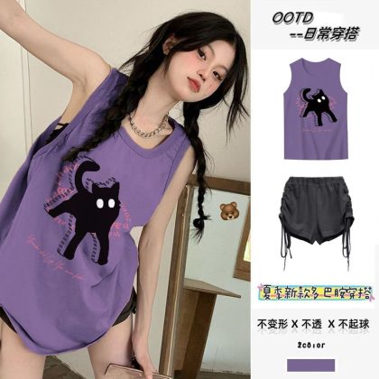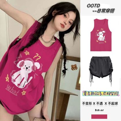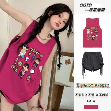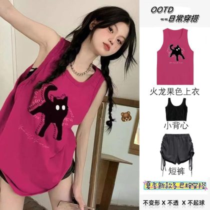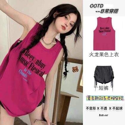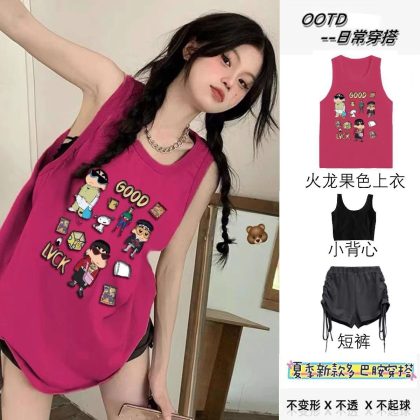 | nameOriginal | Summer New suit Female Students Internet Celebrity Wear a Set of Loose Vest Sweet Spicy Sleeveless Top Ins Shorts |