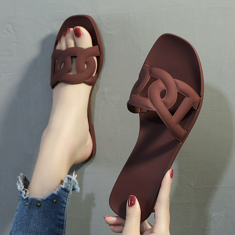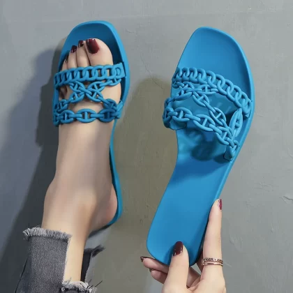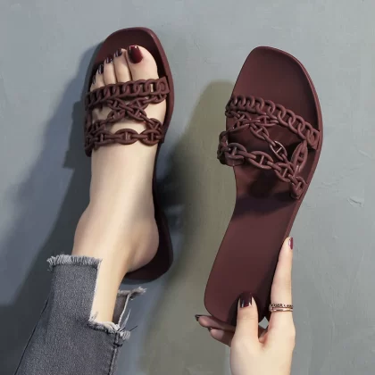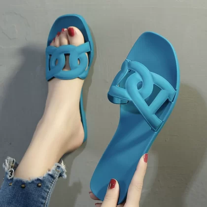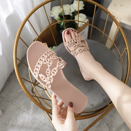 Summer new three-belt chain pig nose beach flat sandals women's pvc plastic one-word jelly shoes