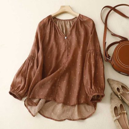 | nameOriginal | Summer New V-Neck Mori Style Artistic Sweet Printed Loose Casual Slimming Lightweight Ramie Top for Women |