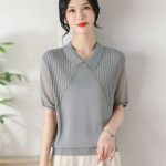 Summer New Women's Knitted T-shirt Thin Short-sleeved Shirt Women's Loose Lap Top Ice Silk Base