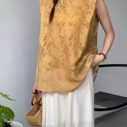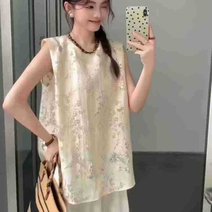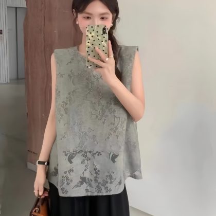 | nameOriginal | Summer on the new! LINIAN Fresh and Elegant Jacquard Loose Sleeveless Positive and Reverse Embroidered Hollow Single-breasted Shirt |