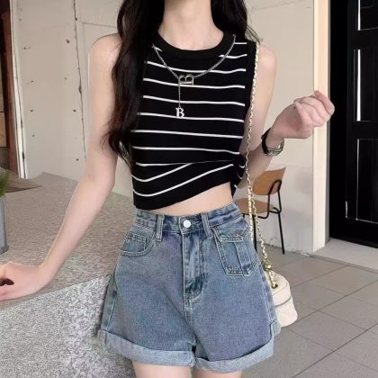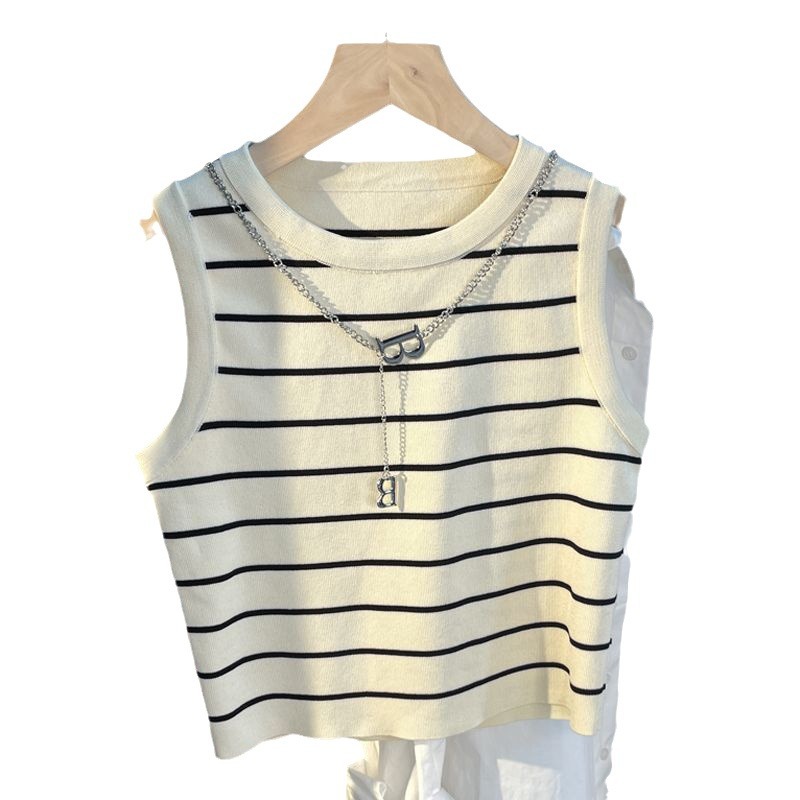 | nameOriginal | Summer outer wear slim-fit ice silk striped camisole women's knitted short design round neck sleeveless top |