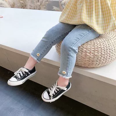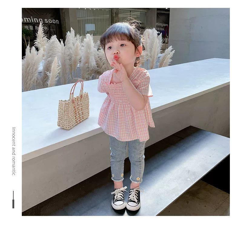 Summer plaid fashionable 7-year-old shirt girls jeans