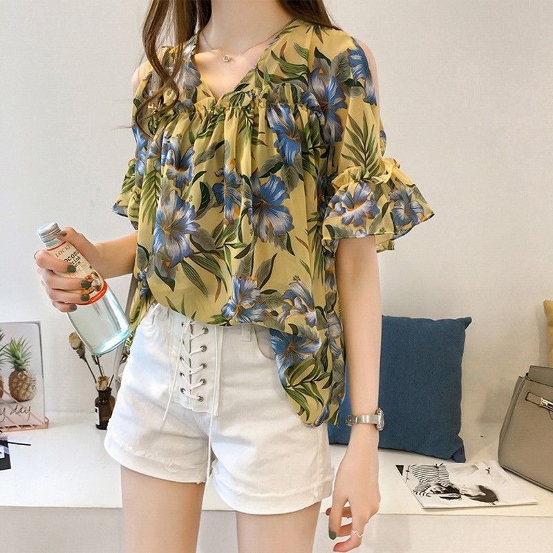 | nameOriginal | Summer plus size Women's Short-sleeved T-shirt chubby girl Loose Fairy Floral Top Super Fairy Shoulder Chiffon Shirt Western Style |