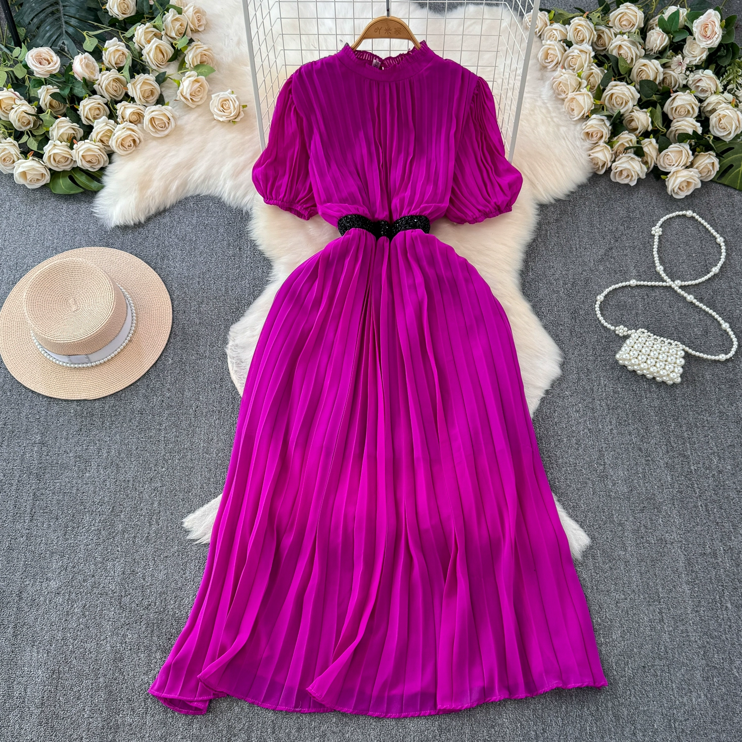 | nameOriginal | Summer puffy, slim-fitting, wide-sleeved short-sleeved dress |