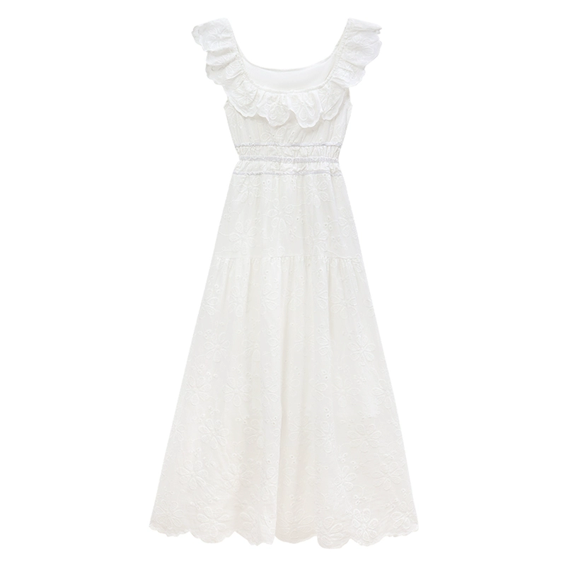 فستان بحمالات على طراز المنتجعات الصيفية مع دانتيل بدون ظهر