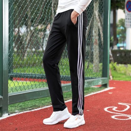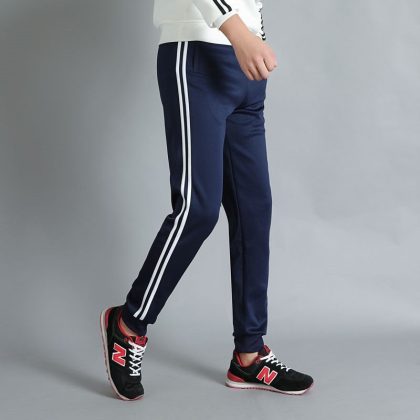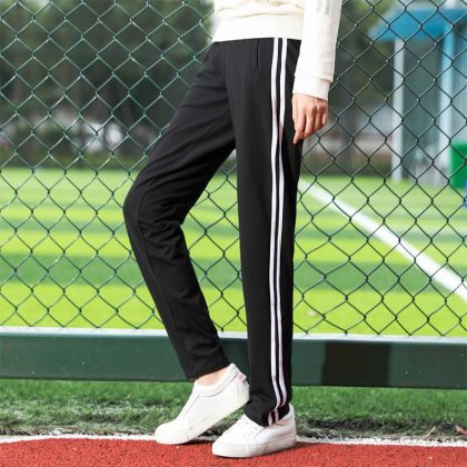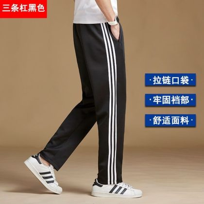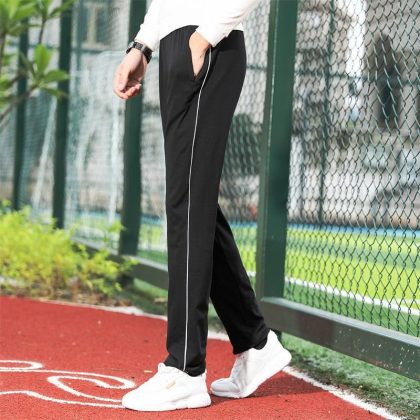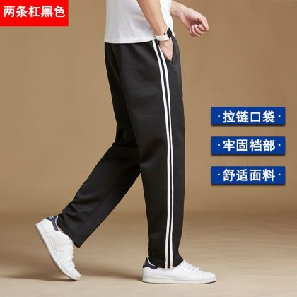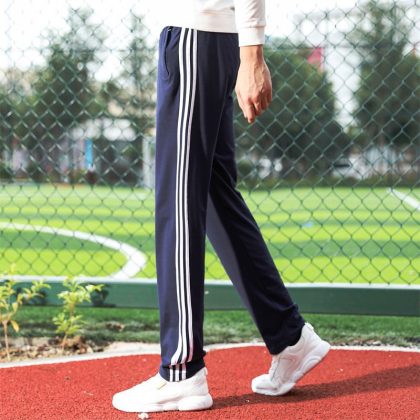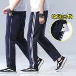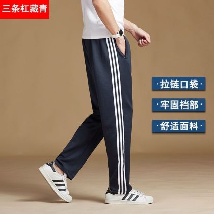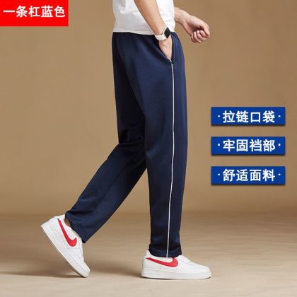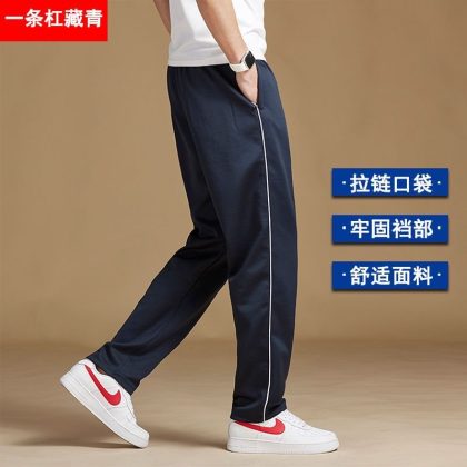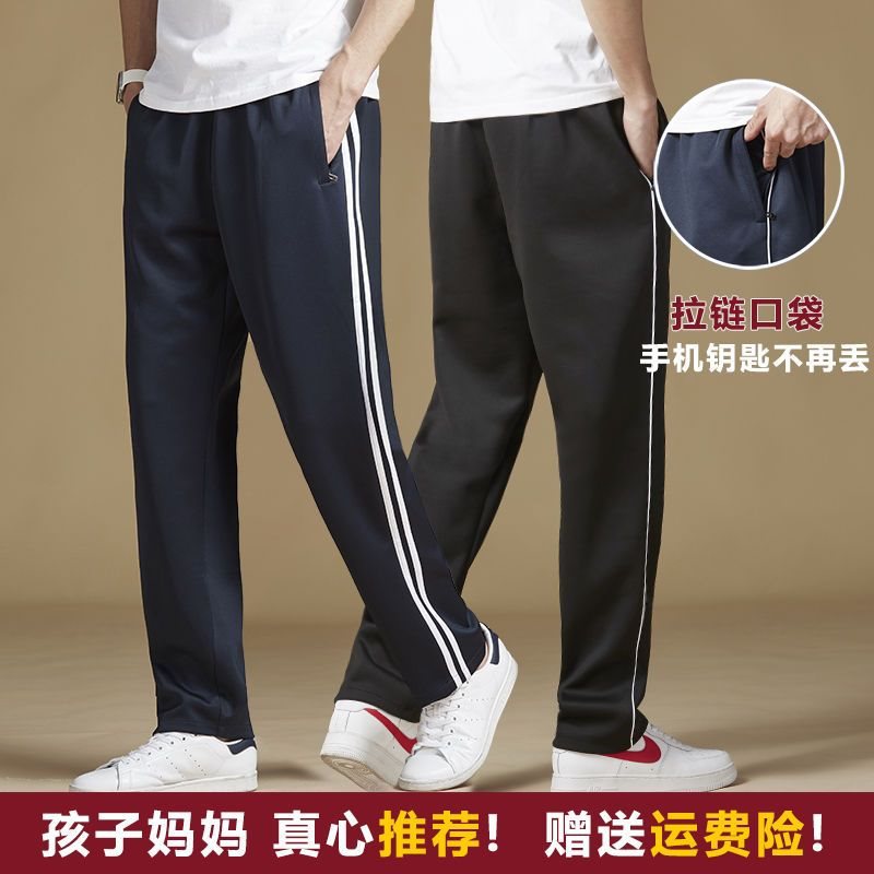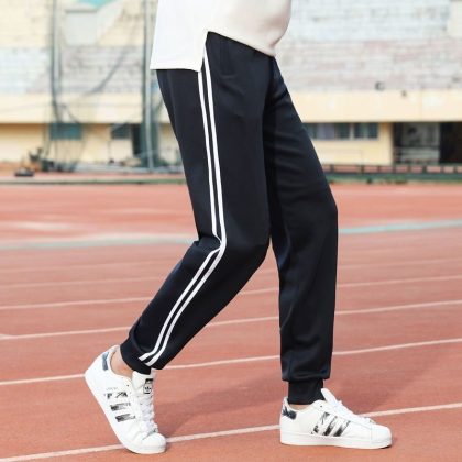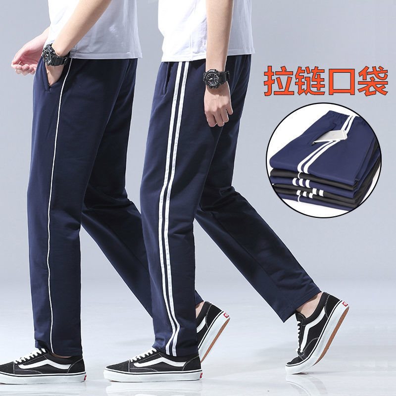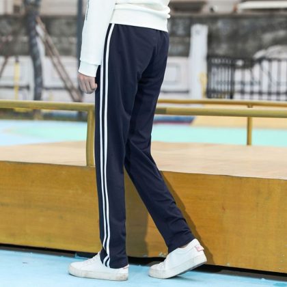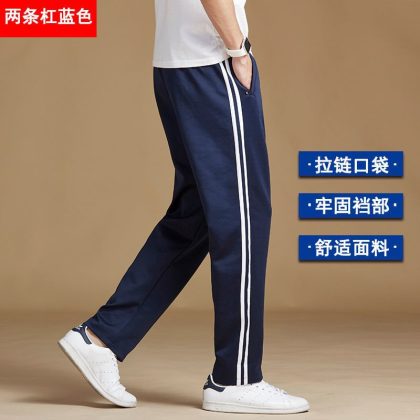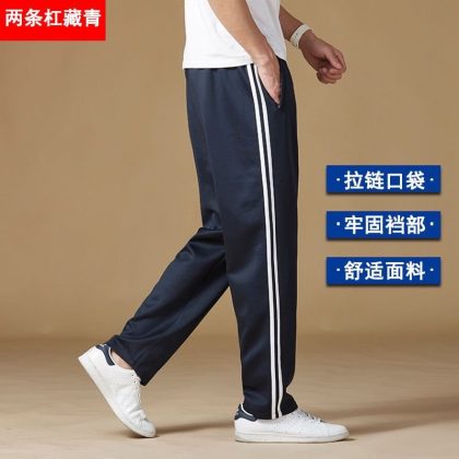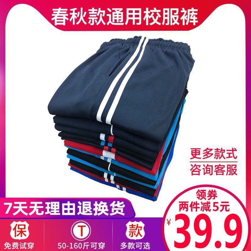 Summer school uniform pants men's and women's first Senior high school two bars dark blue sports pants thin one bar cotton school pants men's