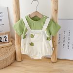 | nameOriginal | Summer Short-sleeved Hatshirt Triangle Bag Fart Clothes Cartoon Dinosaur Short Climbing Suit Baby Fake Two-piece One-piece Suit |