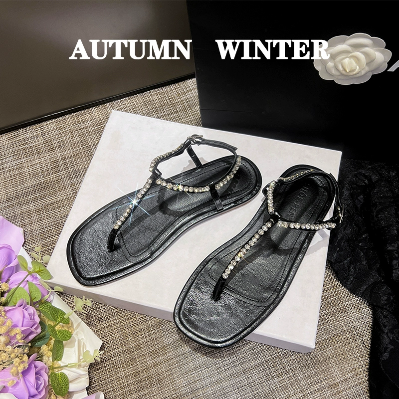 | nameOriginal | Summer silver sandals fairy style flat flip-flops with rhinestones |