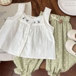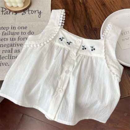 Summer Simple Children's Wear Korean Girl's Cherry Embroidered Lace Sling Doll Shirt Vest Top