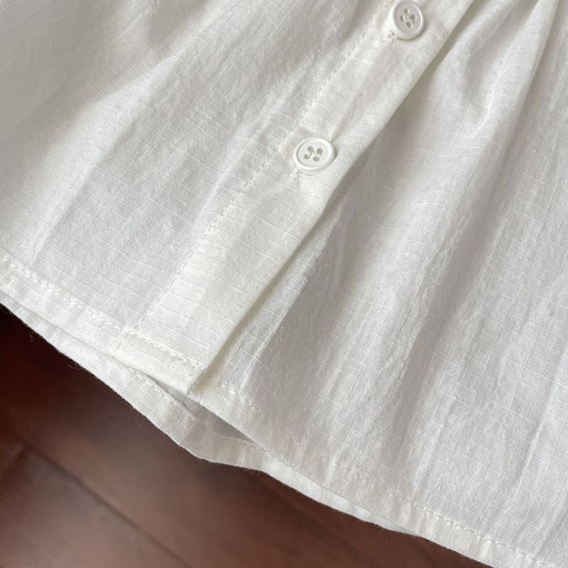 الصيف ملابس أطفال بسيطة الكورية الفتاة الكرز المطرزة الدانتيل حبال دمية قميص سترة أعلى