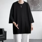 Summer simple off-shoulder ice silk short-sleeved T-shirt for boys casual bottoming loose large size three-quarter sleeve T-shirt for fat people