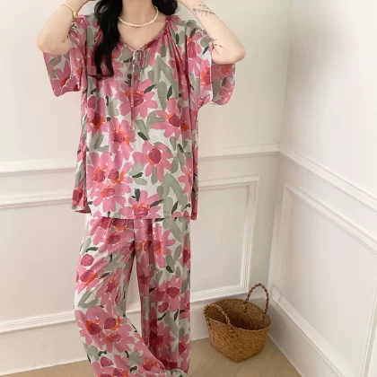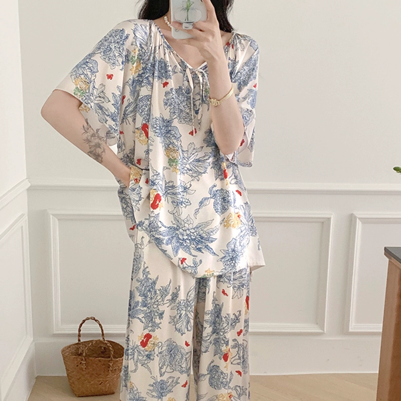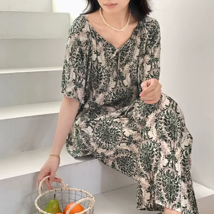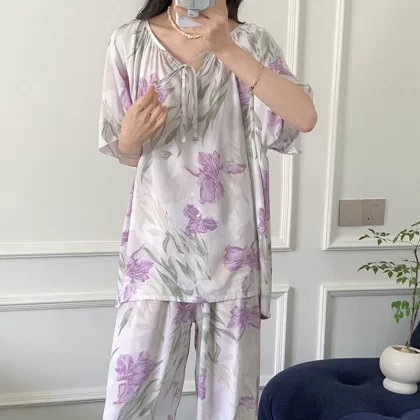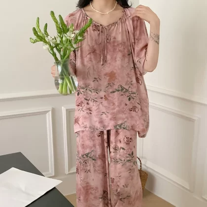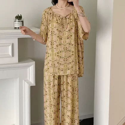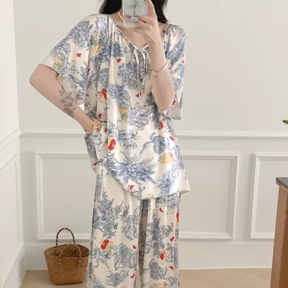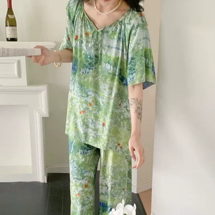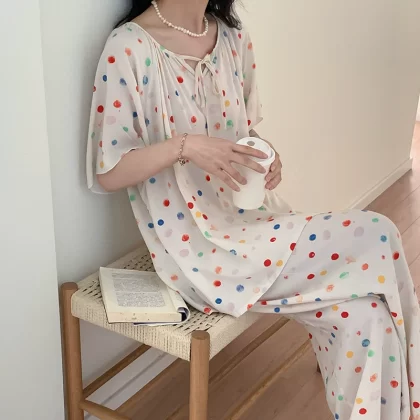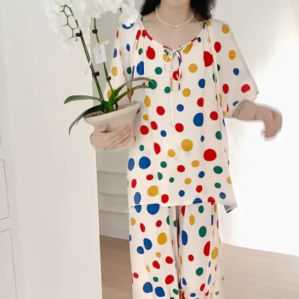 | nameOriginal | Summer skin-friendly polka dot cotton silk home clothes that cover belly and look slimming |