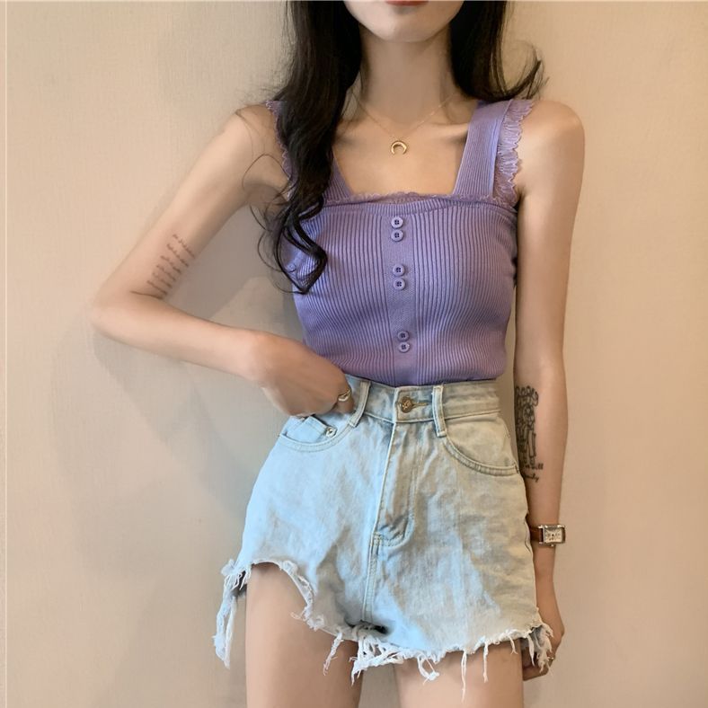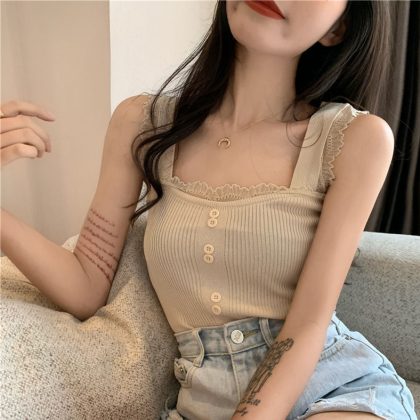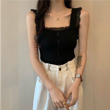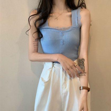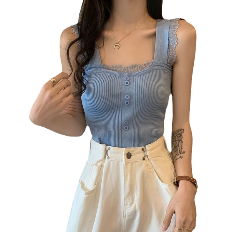 Summer Sweet Slim-fit Sexy Slimming Sling Sleeveless Stylish Bottoming Short Top Lace Knitted Vest