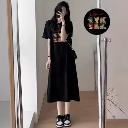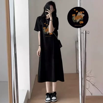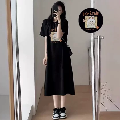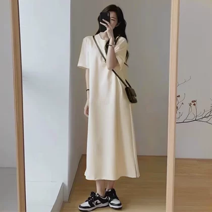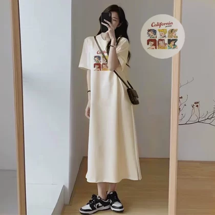 قميص الصيف غير الرسمي القطن الكوري النقي النقي قصير الأكمام تآكل الأمومة
