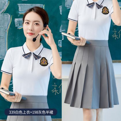 | nameOriginal | Summer T-Shirt Top Early Education Training Institution Teachers Pleated Skirt Polo Shirt Work Clothes Kindergarten Teachers Garden Clothes |