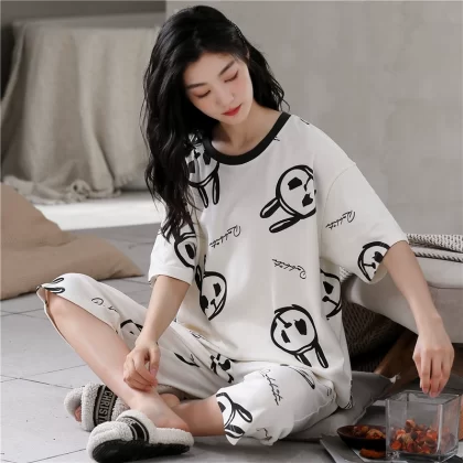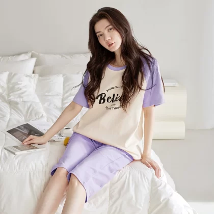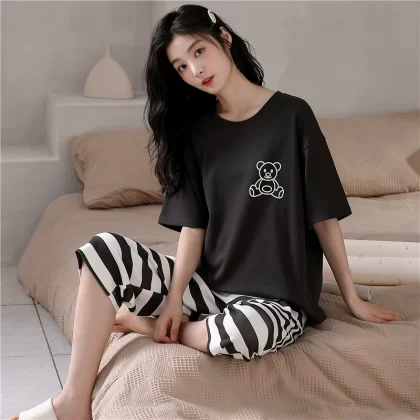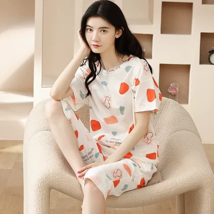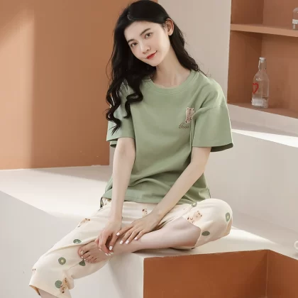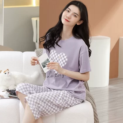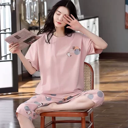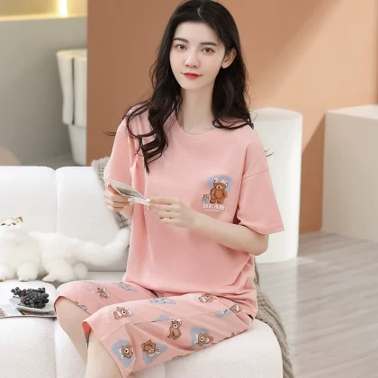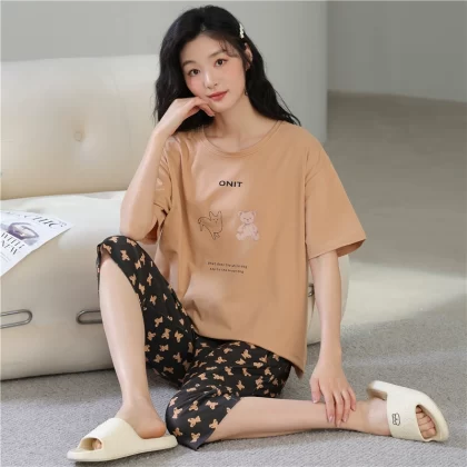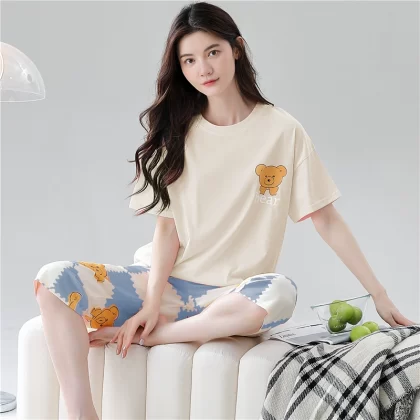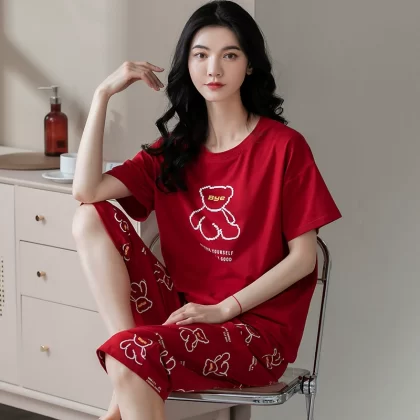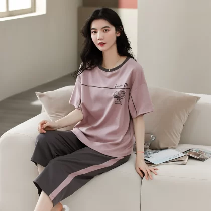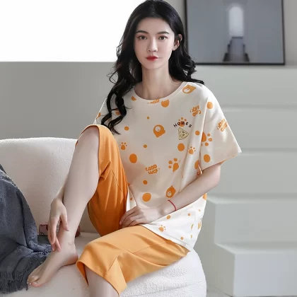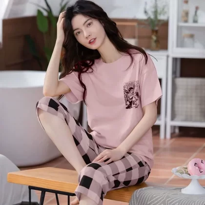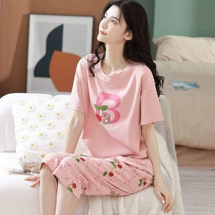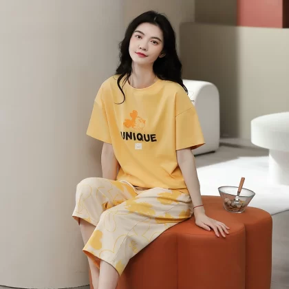 | nameOriginal | Summer Thin Casual Cotton Short Sleeve Cropped Pants Women's Pajamas |
