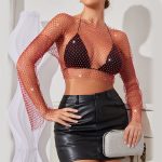 | nameOriginal | Summer Thin Color Diamond Half-cut Top Mesh Diamond Outer Long-sleeved Waistband Party Shirt |