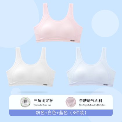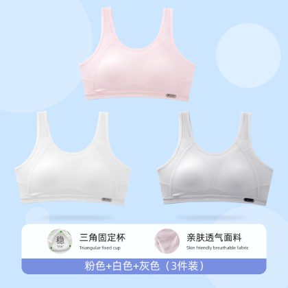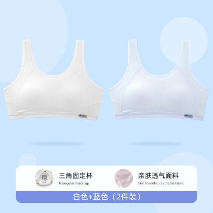 Summer Thin Girls' Underwear Fixed Cup Junior Senior high school Students Puberty Sports Bra Stage II and III