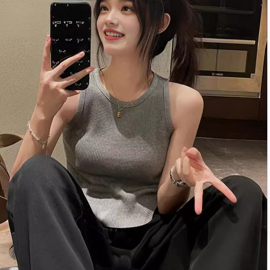 Summer Thin Hot Girl Short Chic Vest Women's Design Sense Niche Ice Silk Knitted Sleeveless Top T-shirt