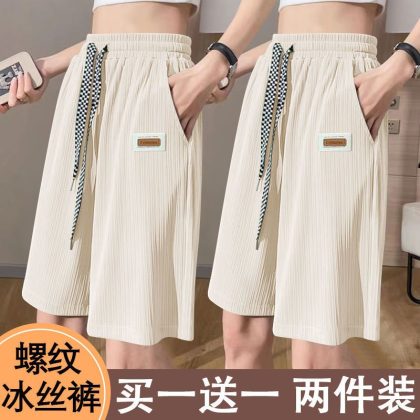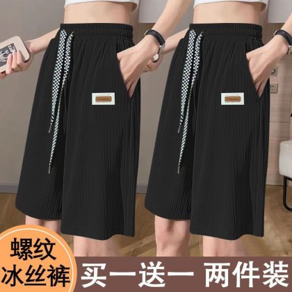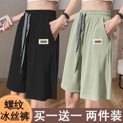 | nameOriginal | Summer Thin Ice Silk Sports Pants Women's 2024 High Waist Wide Leg Casual Middle Pants Outer Wear Beach Shorts |