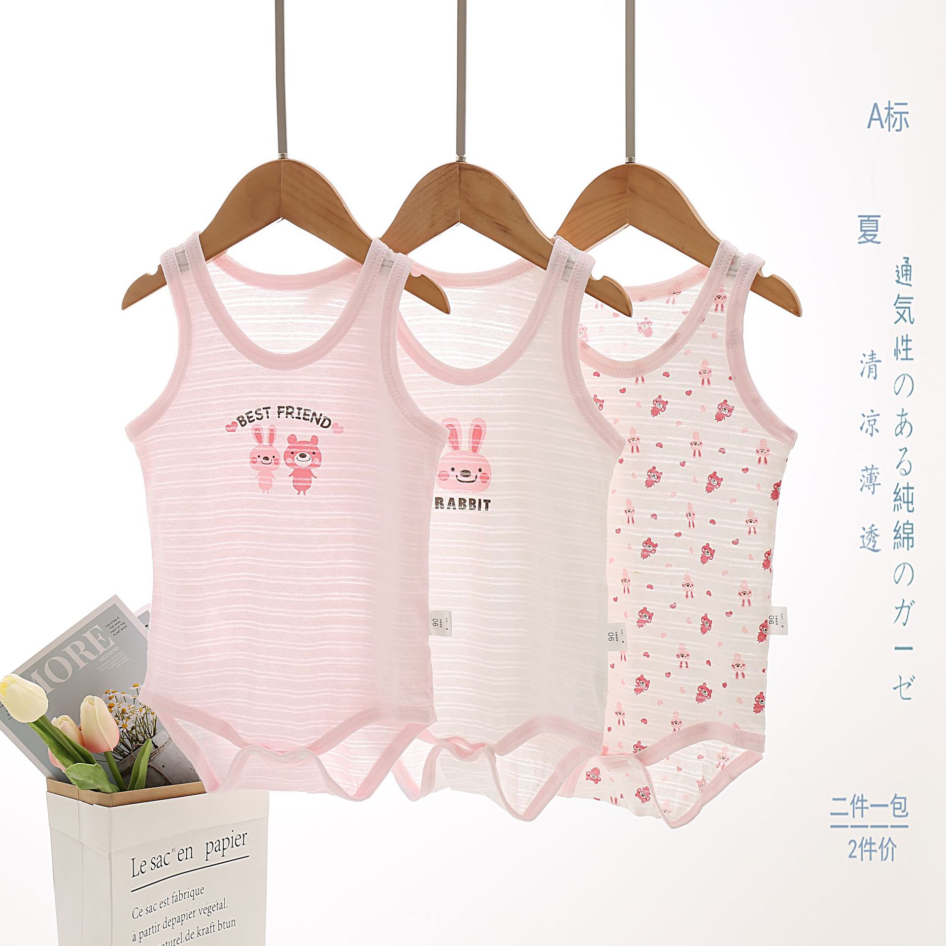 Summer Thin Slub Cotton Japanese-style Cartoon Printed Sleeveless Baby One-piece Triangle Bag Fat Clothes Vest
