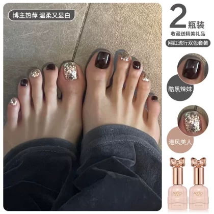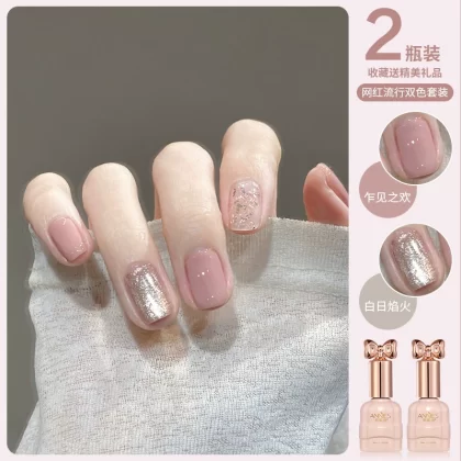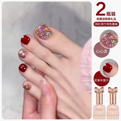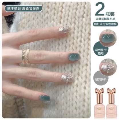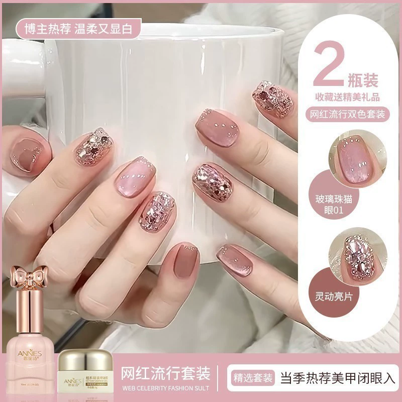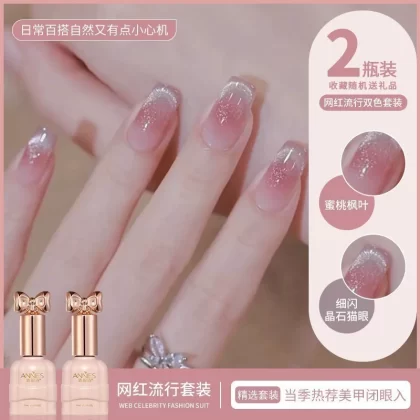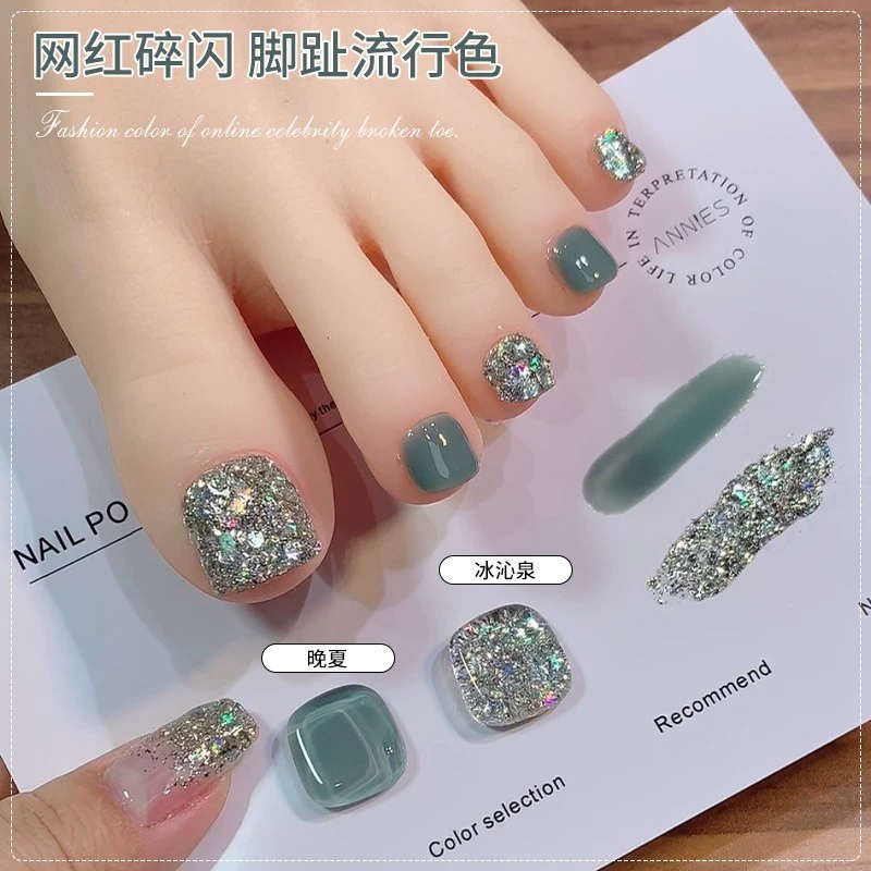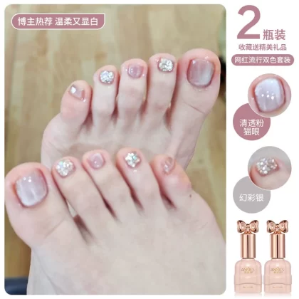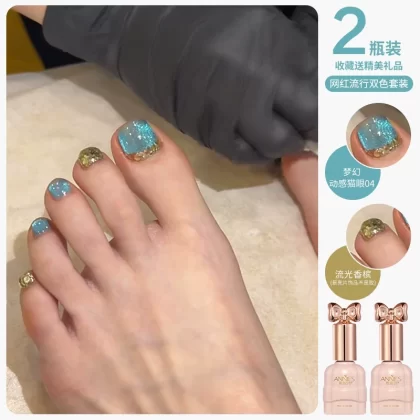 | nameOriginal | Summer toe nail polish glue 2024 new popular sparkling glitter glass beads cat eye two-color manicure set |