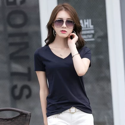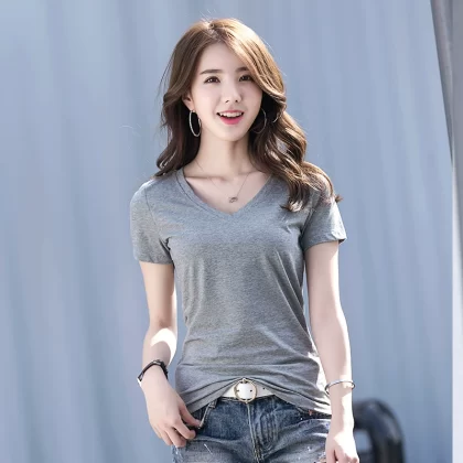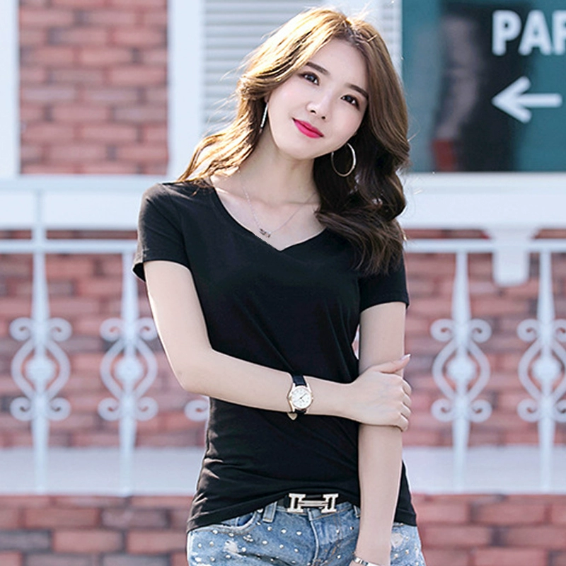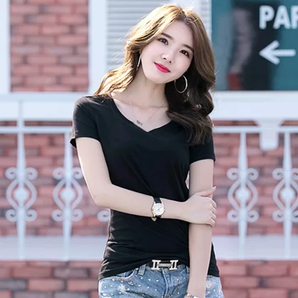 | nameOriginal | Summer V-neck pure cotton slim fit top short-sleeved T-shirt |