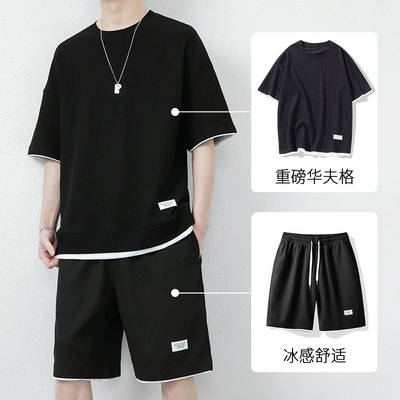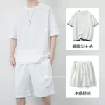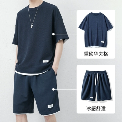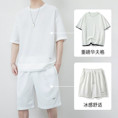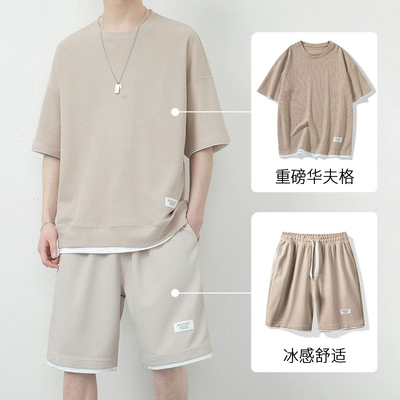 Summer waffle sports suit for men, summer ice breathable short-sleeved shorts two-piece set to match trendy men's clothing
