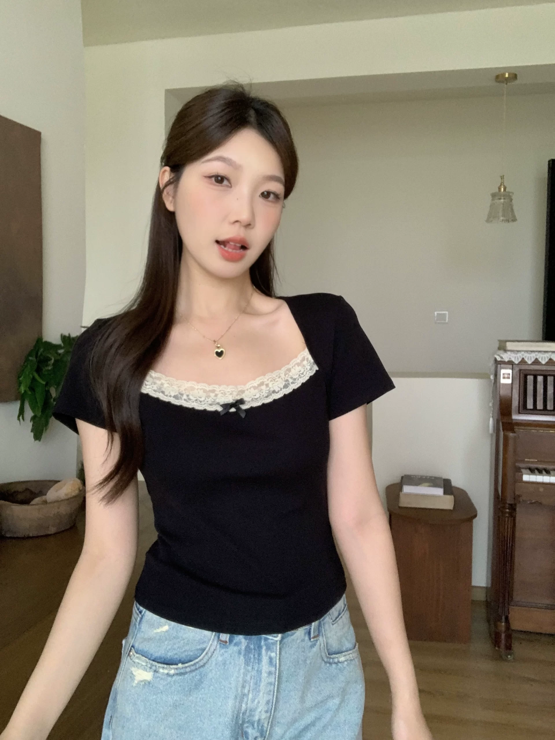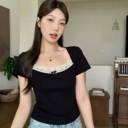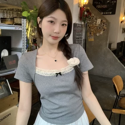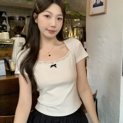 | nameOriginal | Summer waist-cinching top niche right shoulder short-sleeved T-shirt |