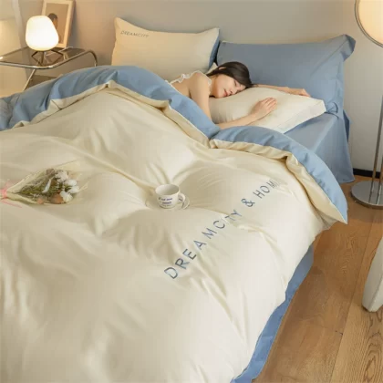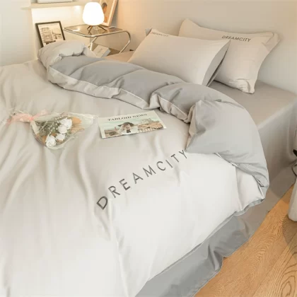| nameOriginal | Summer washed cotton four-piece bed sheet, quilt cover and fitted sheet, simple, light, luxurious and high-end three-piece bedding set |
