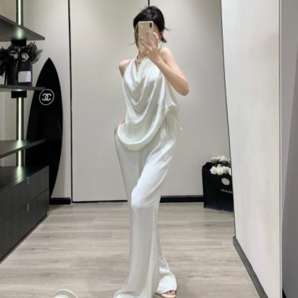 | nameOriginal | Summer wear with a set of this year's fashion relaxed streamer back hanging neck vest wide leg pants two-piece women |