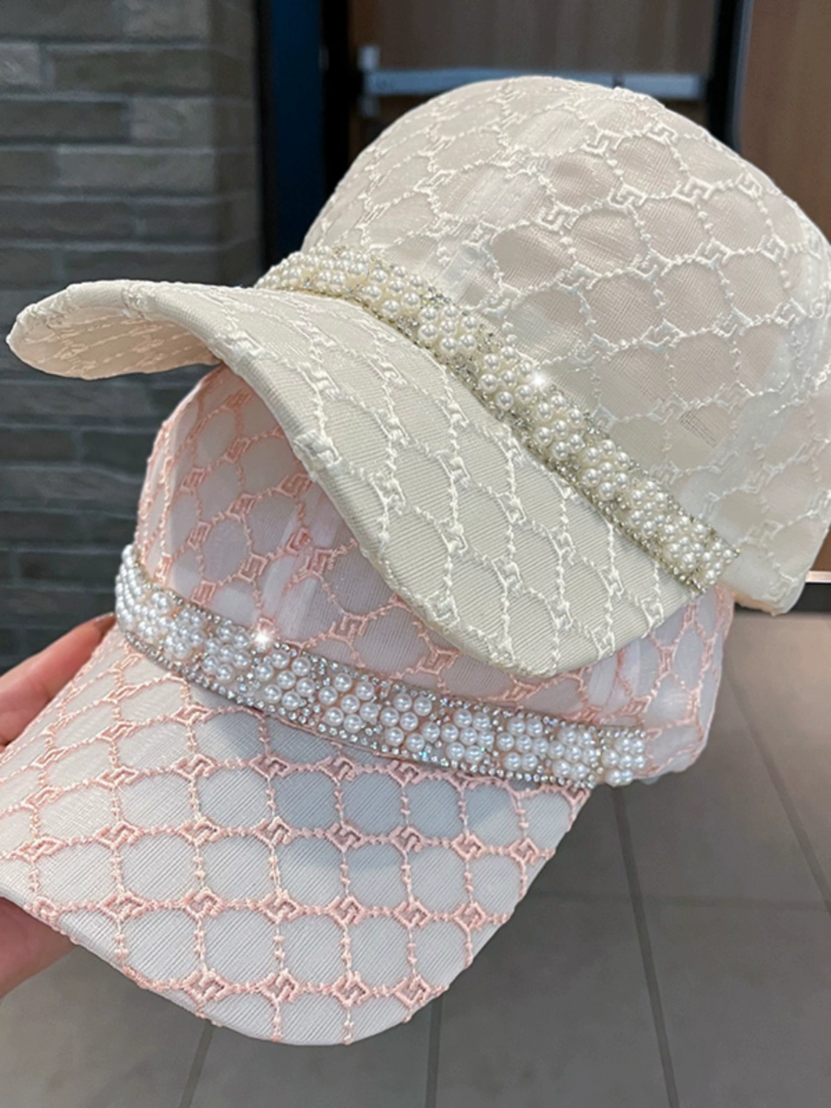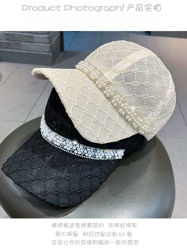 | nameOriginal | Summer women's baseball hat fashionable thin pearl hollow mesh peaked soft top breathable sun hat for women |