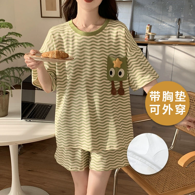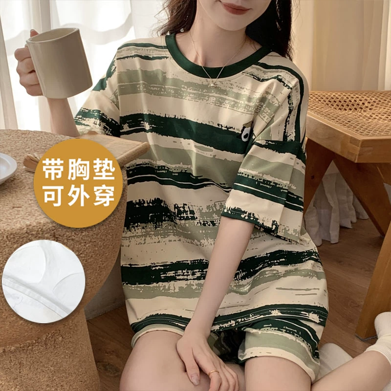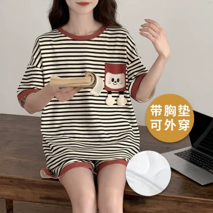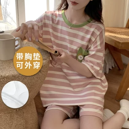 | nameOriginal | Summer women's Korean style striped home wear two-piece pajamas |