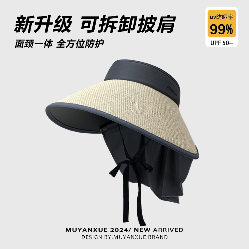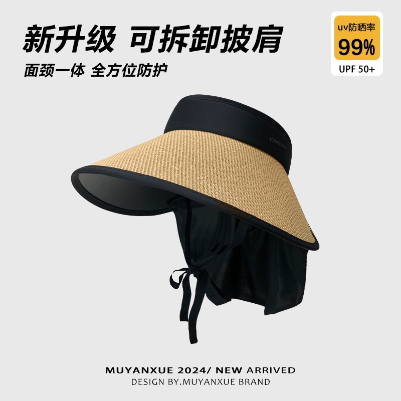 حماية الرقبة الصيفية للسيدات في الهواء الطلق قش المنسوجة الفارغة في حماية أشعة الشمس