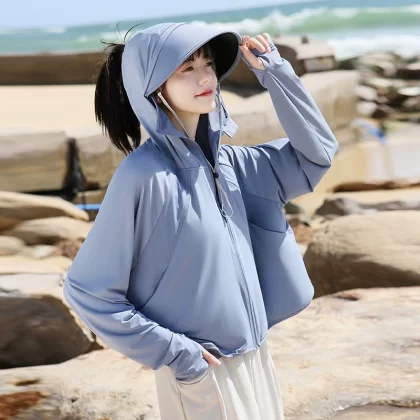 | nameOriginal | Sun protection clothing for women in summer 2024 new style black rubber brim original yarn ice silk upf50+ anti-UV thin sun protection clothing |
