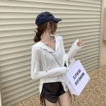 | nameOriginal | Sunscreen Blouse Women's Summer Thin Irregular T-Shirt Loose V-Neck Mid-length White Hooded Ice Silk Long-sleeved Top |