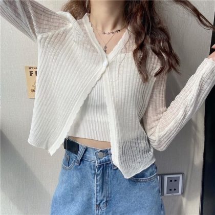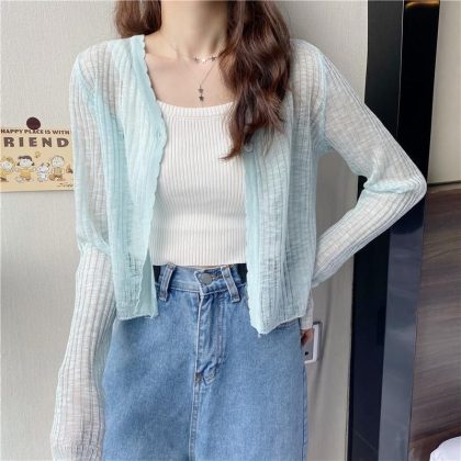 | nameOriginal | Sunscreen Cardigan Coat Women's Summer 2024 Thin Outer Wear Loose Long-sleeved Knitted Short Spring and Autumn Ins Trendy Top |