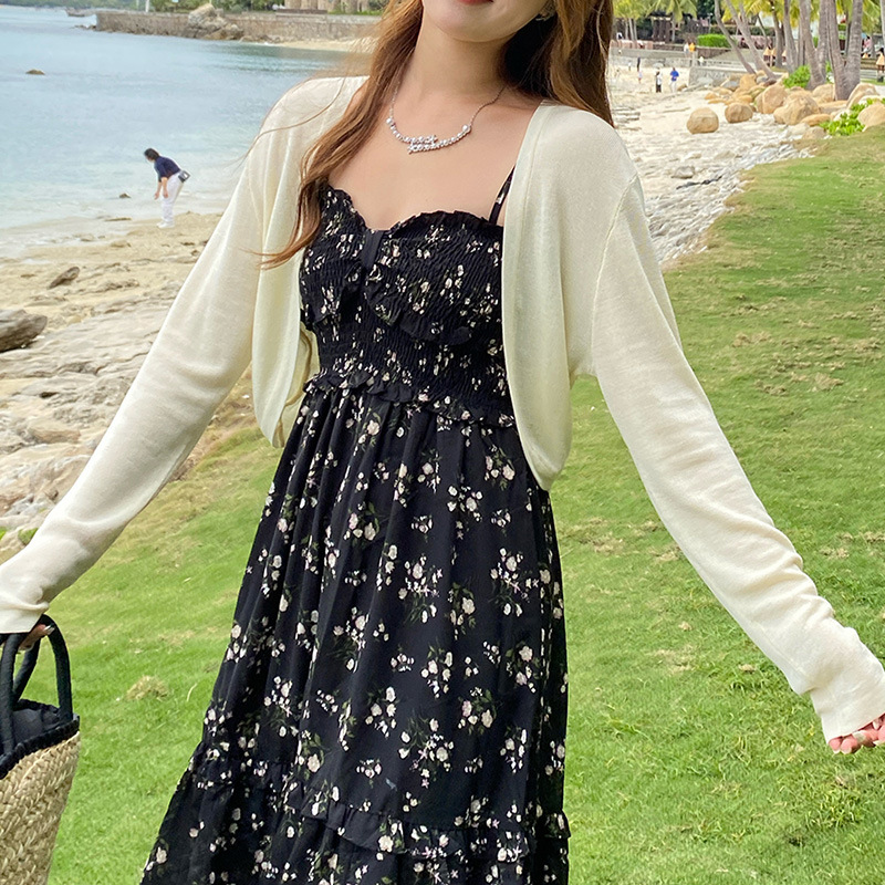 Sunscreen Cardigan Knitted Coat Women's 2024 Summer Thin Slip Skirt Overshirt Ice Silk Short Waistcoat
