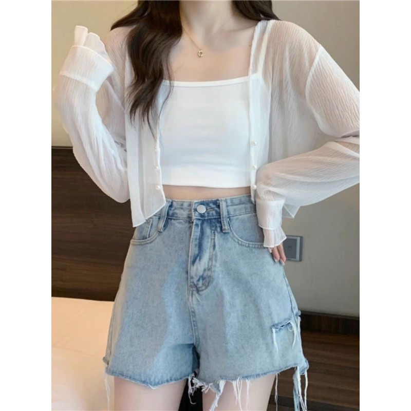 | nameOriginal | Sunscreen Chiffon Shirt Women's Summer New Shawl with Skirt Cardigan Short Jacket Floral Sling Outer Long Sleeve Top |