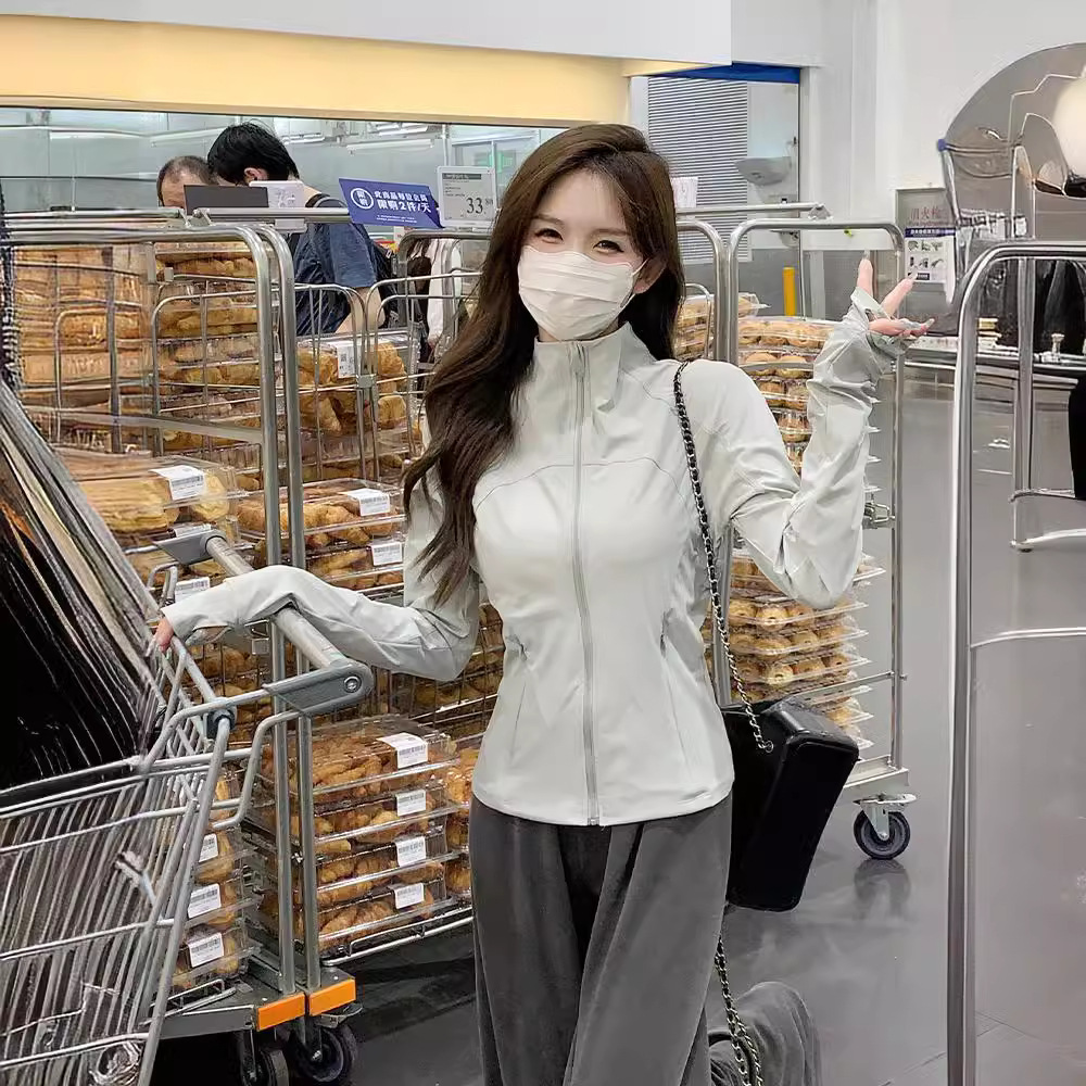| nameOriginal | Sunscreen Clothing Women's Summer 2024 New Style Petite Vertical Collar Original Yarn Ice Silk Slim Yoga Clothing Lightweight Jacket |