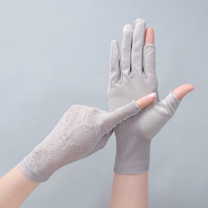 Sunscreen Gloves Summer Women's Breathable Non-slip Open-finger Cycling Driving Ice Silk Anti-ultraviolet Two-finger Tea Shade