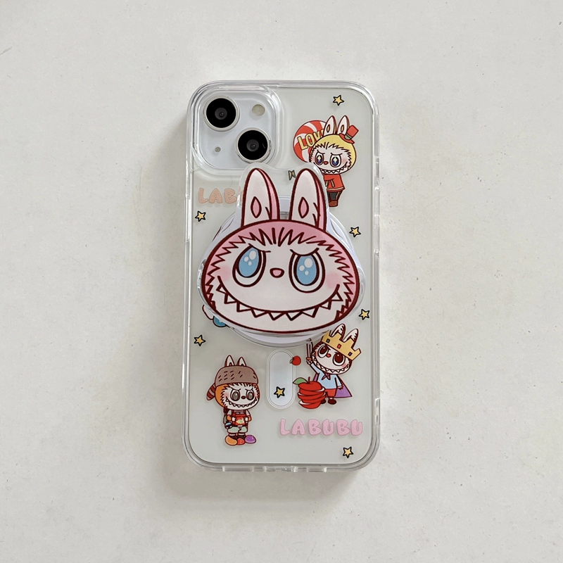 Super cute and good-looking LABUBU with magnetic stand suitable for Apple 14 mobile phone case magnetic iPhone13ProMax acrylic 15pro anti-fall 12/11 silicone 14pro