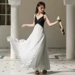 Super fairy black and white stitching large hem pleated skirt forest suspenders