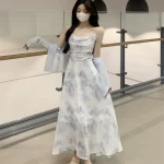 سوبر خرافية الشيفون الفرنسي مطوي حزام الحمالة الأزهار ألف خط