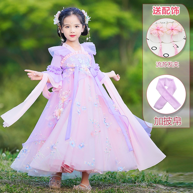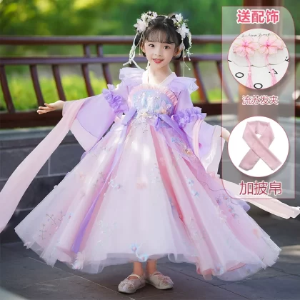 | nameOriginal | Super fairy girl summer Hanfu ancient style children's clothing 2024 new summer dress Flower God little girl performance costume |