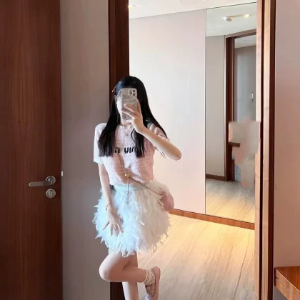 | nameOriginal | Super Fairy Sweet Feather Skirt Ostrich Feather Puff Skirt Birthday Party Dress Skirt Socialite Princess Mini Skirt |