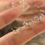 Super flash zircon butterfly earrings four-piece set for women, high-end design set, 925 silver needle earrings, hot style earrings